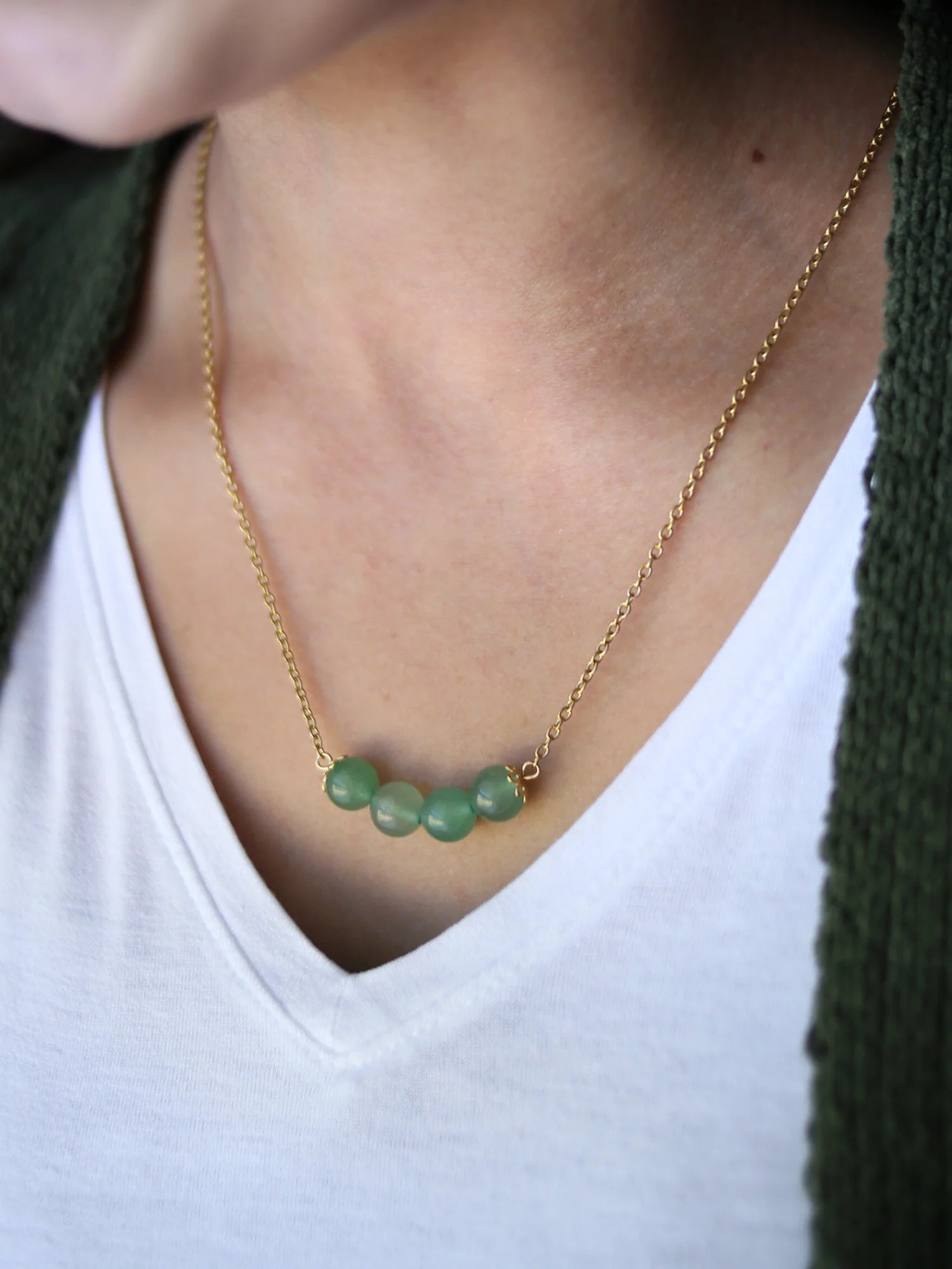Our Crystal Affirmation Necklace features four polished crystal beads on a minimalist 18-inch chain with a 2-inch extender. Available in both silver and gold, this hypoallergenic stainless steel necklace is perfect for sensitive skin.